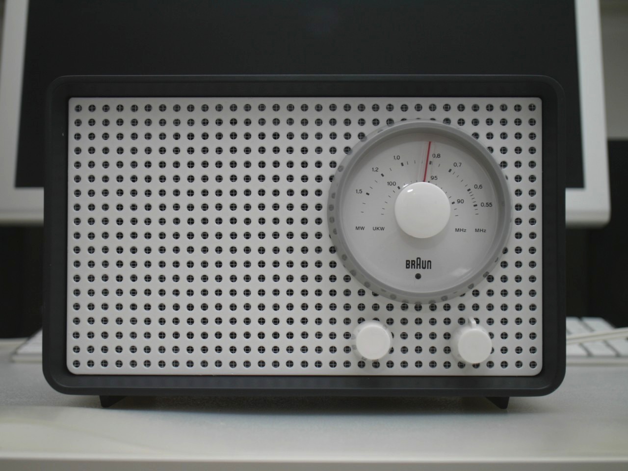 Im Gegensatz zur Beschriftung neuerer Braun Geräte lässt sich hier mit einem Standard-Font kein befriedigendes Ergebnis erzielen. Einerseits scheint hier nicht die sonst meistens passende Akzidenz Grotesk verwendet worden zu sein und andererseits wirkt eine konventionell am Rechner erstellte Druckvorlage einfach zu glatt.